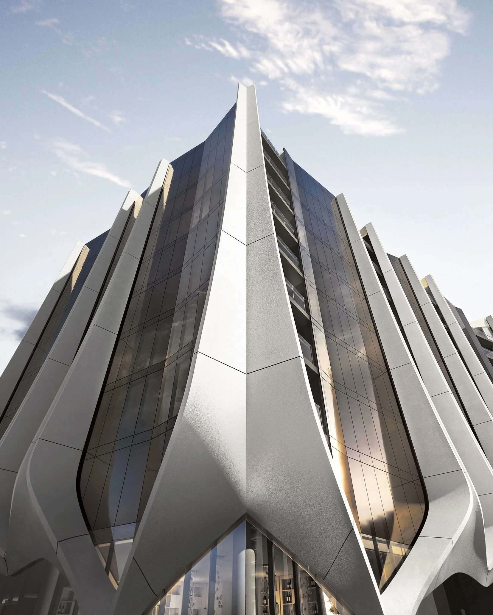 The sculptural expression achieved on the lower levels of the facade creates a natural connection between the private residential zone and the public lakeside recreational area and contributes to the activation of the lakefront making it a vibrant place for both residents and visitors.